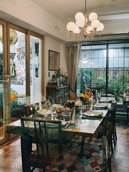 我們的用餐區域是緊鄰廚房的圓桌,可以容納12人,乍看之下有點凌亂,可是看著看著其實都不違和也很有生活感.