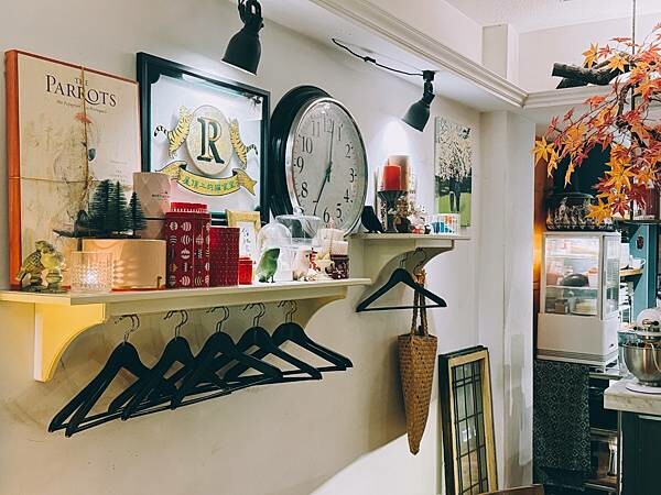 之前提到屋頂上的貓一天只接兩組客人,除了我們用餐圓桌那個空間之外,另一個入口一進來就是這個超級美麗的小客廳,完全就是我夢想中的客廳!湖水綠的蓬鬆沙發,淺湖水綠的隔間木作和牆面.明顯的色彩點綴出現在地上的菱形地毯上!照片中沒出現的那面牆上還畫了一顆很可愛的樹(整間店的裝潢影片可以看IG REEL喔!)