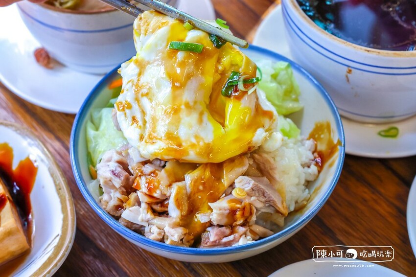 金牌雞肉飯有配菜、雞肉和爆漿荷包蛋,如果不敢吃半熟蛋記得點餐時特別告知店員,可以用成全熟蛋。