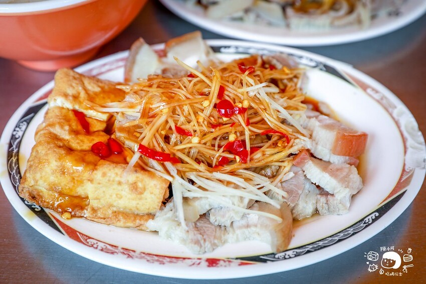 熱鍋汆燙後裝盤,鋪上大把豪邁薑絲,客氣的闆娘先問要不要辣?接著淋上特調的辣椒醬油,坐在內用位置上,看她熟練的動作,忙碌中卻客氣的語調,即使現場非常熱,也會因為她的態度有所包容。