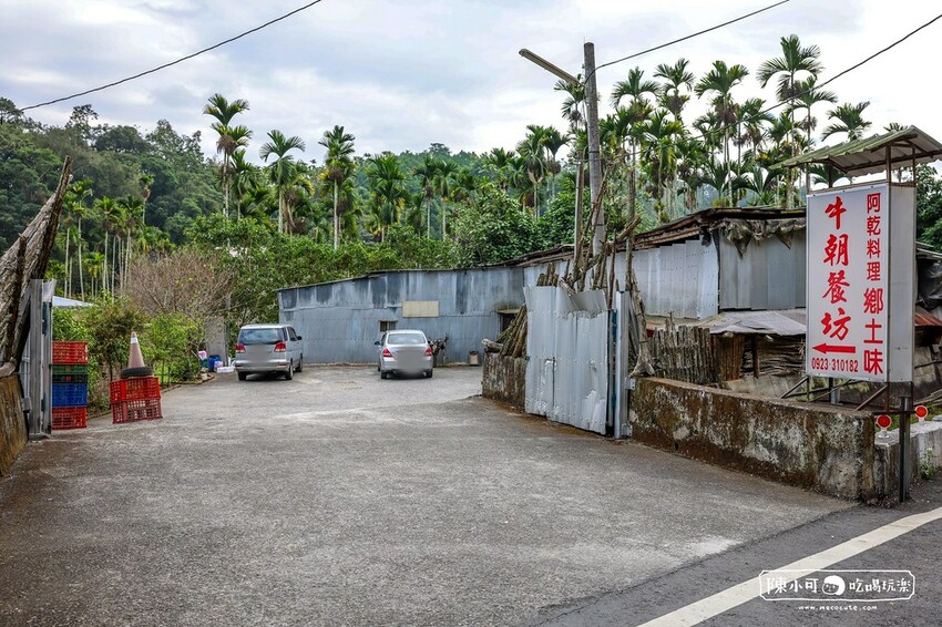 【牛朝餐坊】就在日月潭附近,招牌還寫著阿乾料理鄉土味,要是想找日月潭美食也可以參考,餐廳前面還有大空地可以停車。