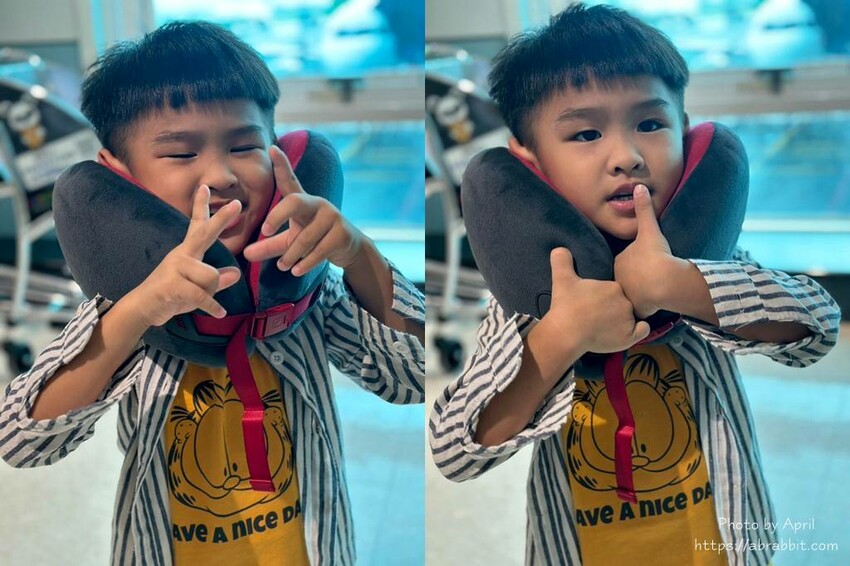 英國寶在機場的時候還拿我的頸枕套著玩,說很舒服,結果到飛機上直接睡到身體歪掉,頭還卡在在扶手旁邊,我只能說幸好有這個頸枕護著!