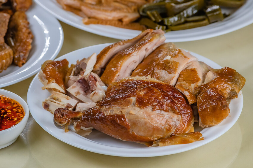 ▲▼麥芽燒雞是郭家滷味的招牌菜之一,經過麥芽糖和多種香料的醃漬,再以慢火燒烤而成。麥芽糖的香氣與雞肉的鮮味完美融合,讓雞肉更加軟嫩多汁。