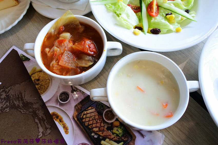 附餐濃湯和羅宋湯,隨手一撈都是配料超級大方.