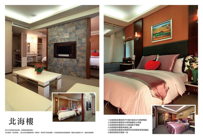 不同風格的套房,準備了所有必需品,房間和浴室整體空間也相當足夠,裝潢大方舒適,房內SPA溫泉浴缸很大而且有冷熱兩池,泉質好,泡起來很舒服,不但能使肌膚細嫩,也能消除疲憊。