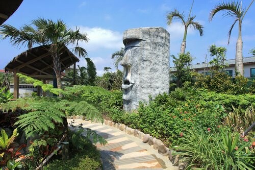 金湧泉SPA溫泉會館將園區打造成度假風,還可看到一座正嘟著嘴的〈摩艾像〉,大型的露天浴池是這裡一大賣點,不論是大人、小孩都能在這裡悠閒享受泡湯。