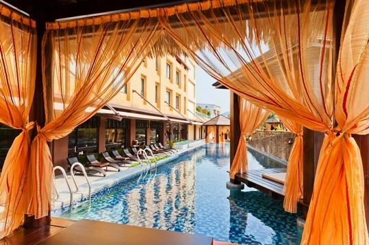 簡潔優雅的自然素材、椰影搖曳、熱帶花朵植栽盡展姿顏,簡約設計融入濃濃峇里風情,充滿熱情與浪漫,非常適合情侶來度假。好幾處很有峇厘島風格的發呆亭,泡湯後可在這休息放空,享受寧靜舒服的時光。