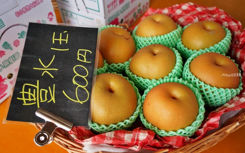 這家 Marusei Orchard まるせい 果樹園 的老闆很酷,不但全身穿粉紅色,還有粉紅色車車,我想他家搞不好也都漆成粉紅的吧?這裡提供四季水果吃到飽,其中最有名的是水蜜桃,但我們這季節剛好遇到蘋果跟梨子盛產,現採現吃爽度超高。