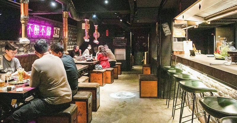 5點半開門,我們訂六點裡面已經有幾組客人開烤了,前半段是一張可以坐十人左右的長桌,也有可以單純喝杯小酒的吧檯,但我不確定那位子能不能烤肉...。