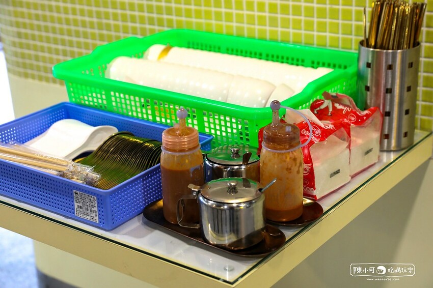 放在自助區的醬料跟餐具。