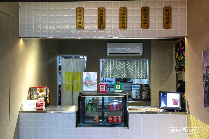 「財記港式臭豆腐宜大店」的櫃檯,除了臭豆腐還有賣一些飲品。