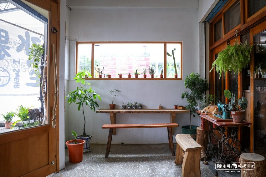 「阿水冰果室」的店外裝潢有些復古,以許多綠色植栽裝飾增加文青,路過都會特別多看幾眼的景緻。