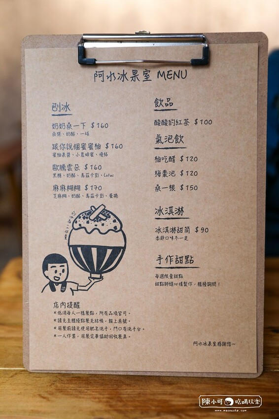 而阿水取自年輕老闆阿公的名字,老闆是回鄉創業的果農第三代,所以平日都在務農,冰店假日才會營業。