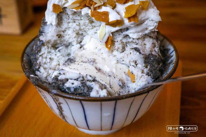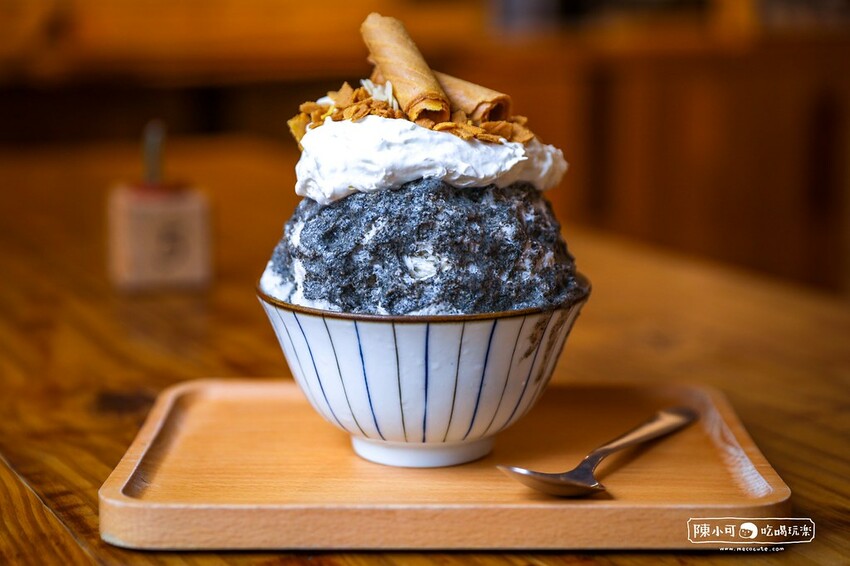 刨冰配料有芝麻糊、奶酪、馬茲卡彭和蛋捲。