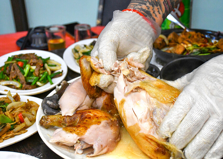 窯烤雞是4斤的溫體雞下去料理,並用龍眼木來窯烤,店員一端上桌,馬上就聞到香氣四溢的味道,讓人忍不住口水直流