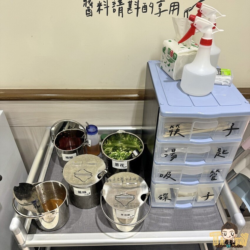 蔥花、薑絲、辣椒、特調秘醬可以讓內用的朋友取用,大家可以自行發揮調配不同的口味喔