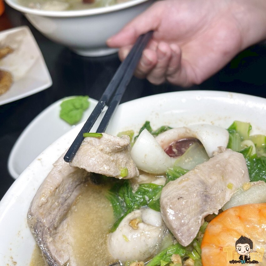 招牌海鮮麵是必點的,有海魚、白蝦、蚵仔、花枝、魚丸、豬肝等配料~