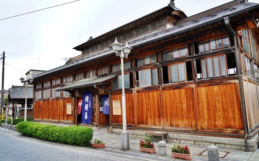 據說松尾芭蕉就是在這裡泡湯,現在的鯖湖湯溫泉是平成5年(1993年)重建的,以檜木打造的建築外觀依然散發著明治時代的氣息,古色古香很有味道。而且,泡湯只需200日圓,好便宜喔!!