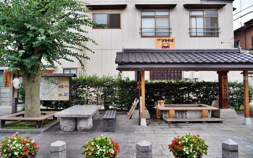 飯坂溫泉街上有4個足湯,鯖湖湯附近的這個足湯就叫「啊!幸福之湯」好有趣!!上面有屋頂,即使下雨也ok!!