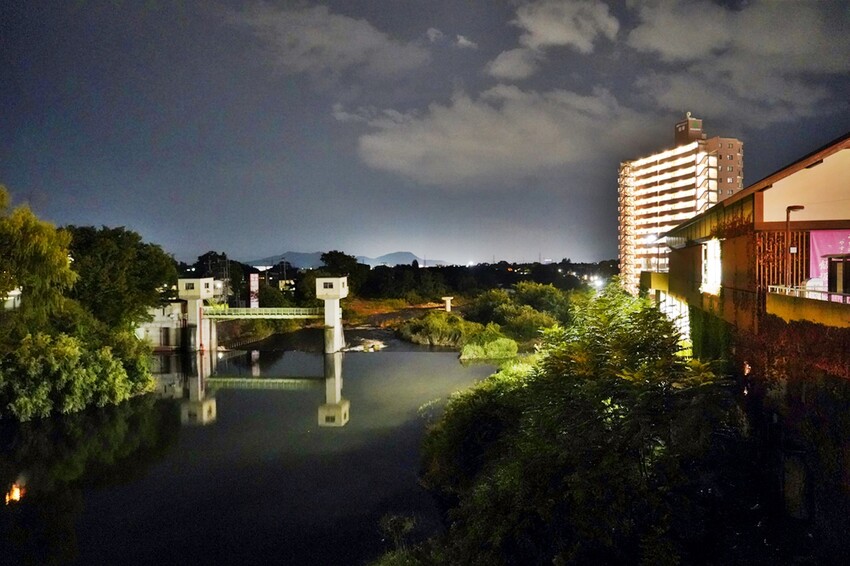 車站附近的十綱橋是飯坂溫泉象徵性的存在,由於這條鋼製拱橋在完成之前架起了由10條鋼線支撐的吊橋,而被稱為十綱橋,是日本現存最古老的鋼造鐵橋,被指定為國家文化財產,從橋上可看到摺上川與其支流赤川沿岸軒軒並列的溫泉旅館。