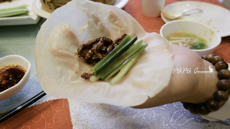 我覺得這道是厲害的,素肉醬汁均勻沾附著甜麵醬,切絲小黃瓜提升整個餅皮脆甜,而餅皮就是烤鴨的面皮,很薄,一口滿足啊!