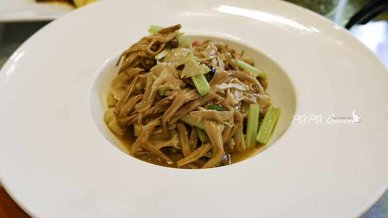 片狀的的菇排是猴頭菇做的,黑胡椒醬略甜偏向粵式醬汁處理!