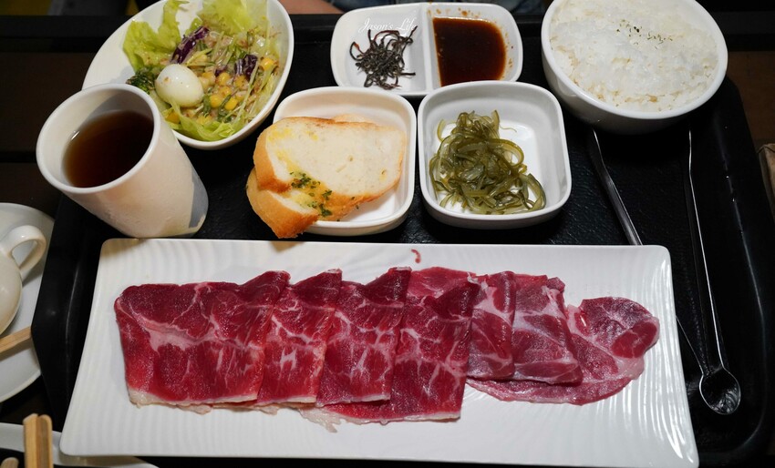 個人套餐除了肉品外,還有生菜沙拉、小菜、麵包等等