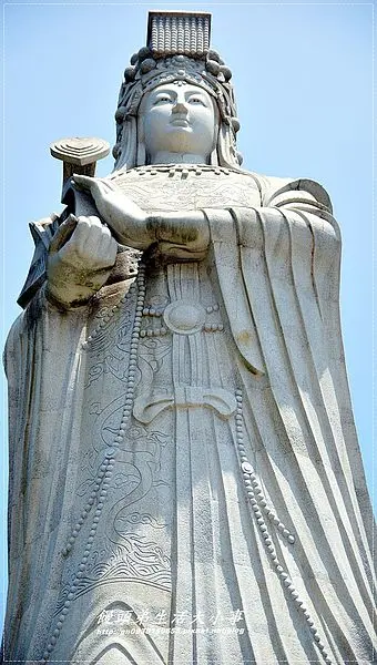 ↓哇!百聞不如一見,超巨大媽祖高聳入雲,晴空下閃閃發光。