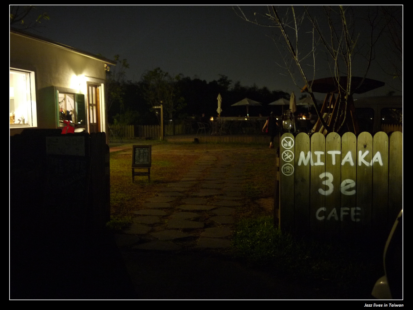 停車場趴好車後再走進3e CAFE, 天色已經晚了, 告示牌上寫著每人低消100元,