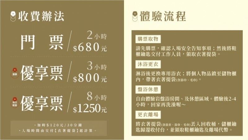 來到這邊盥洗用具、毛巾等等都不用帶,直接購票即可入場體驗,快繼續看下去吧!
