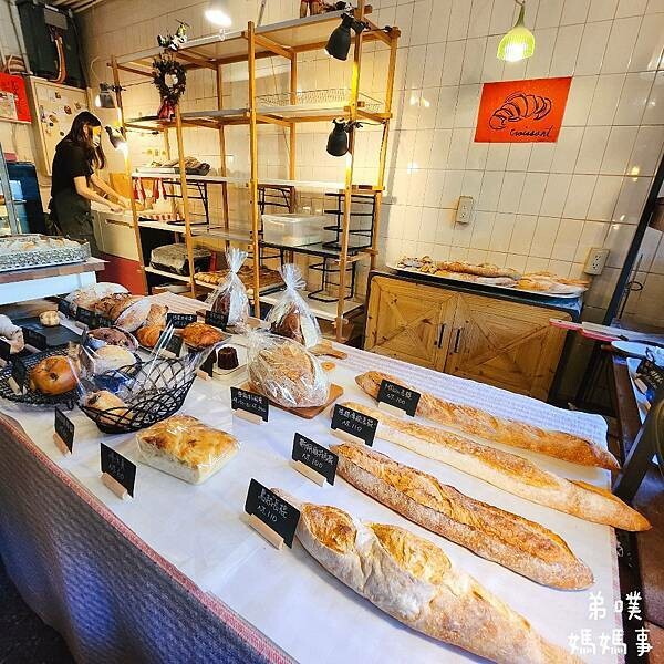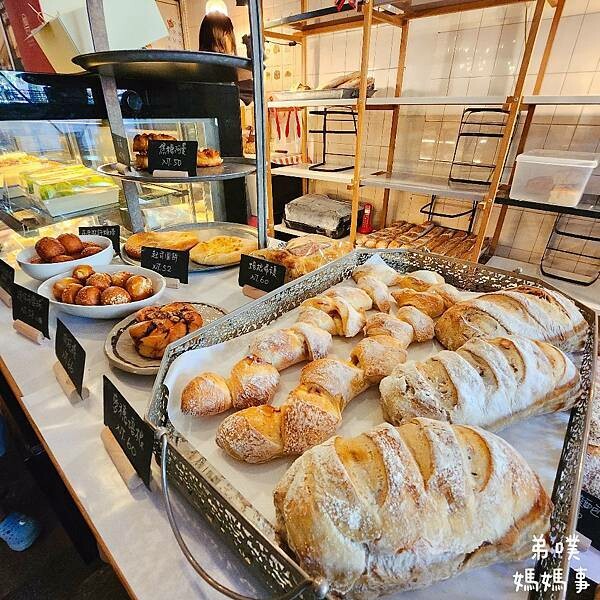 好啦~還是要認真分享一下店家的麵包,這邊主打歐式麵包,弟噗媽老實說歐式偏硬的麵包大致上不太是我的菜,所以我只選可麗露和焦糖阿曼。品相在店家官網都能看到,不過還是以現場呈現的為主喔!