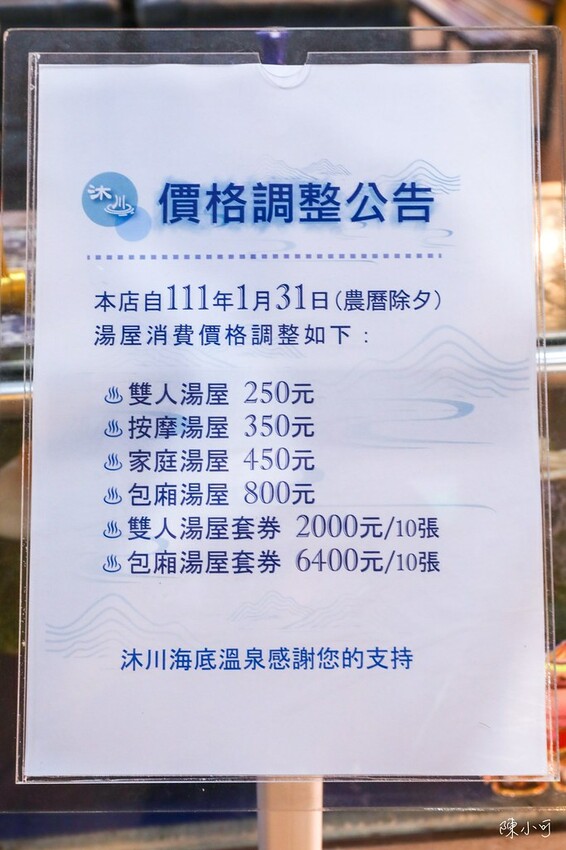 沐川海底溫泉泡湯價錢漲價公告