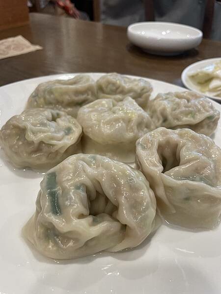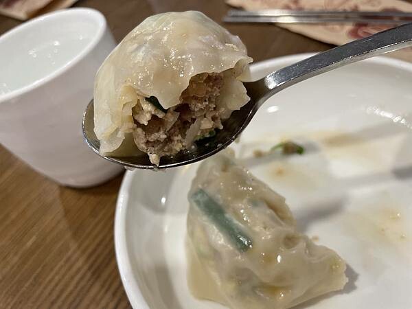然後將餃子放入後直接用湯匙切半就可以吃了喔!