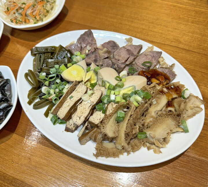 豆乾(30元)、海帶(20元)、滷牛肚(90元)、滷牛腱(90元)。