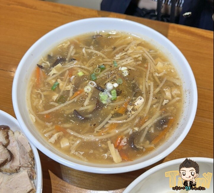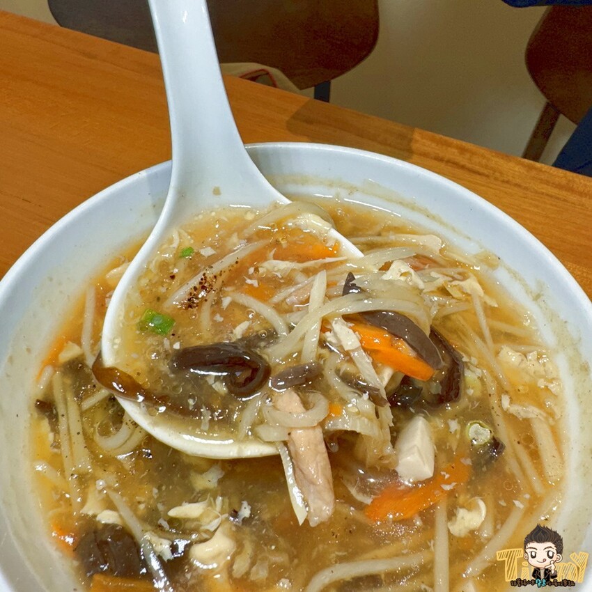 有筍絲、肉絲、木耳、蛋花等滿滿湯料,搭配酸V帶胡椒嗆辣的湯頭,是小米喜歡的口味。
