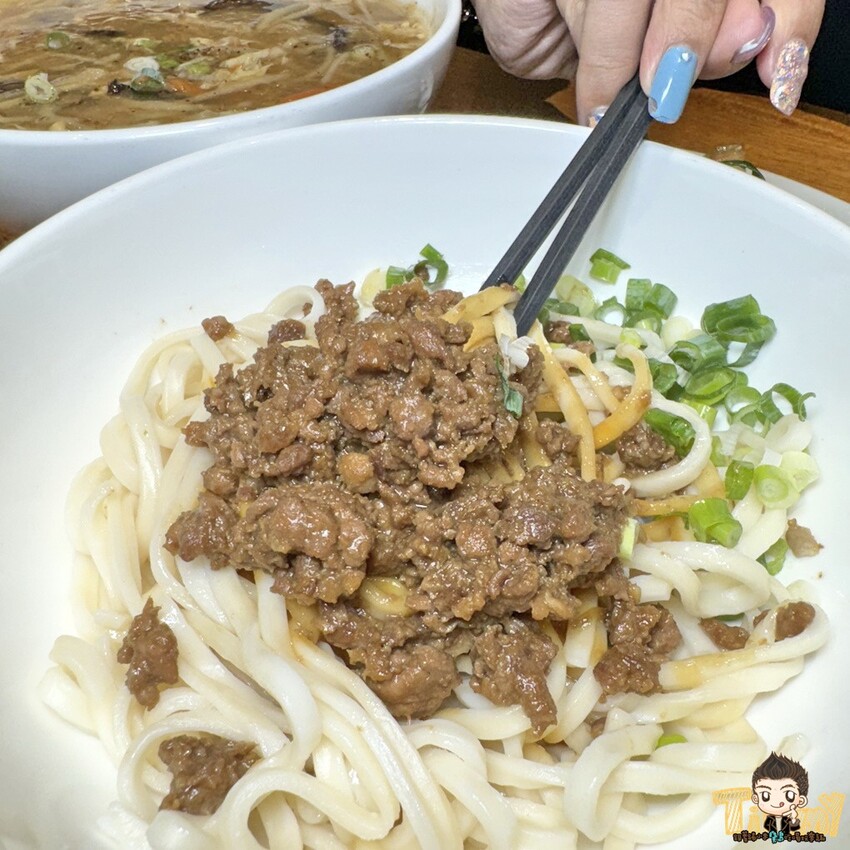 肉燥、蔥花搭配粗麵,雖然看起來樸實無華,但吃了會讓人回味無窮