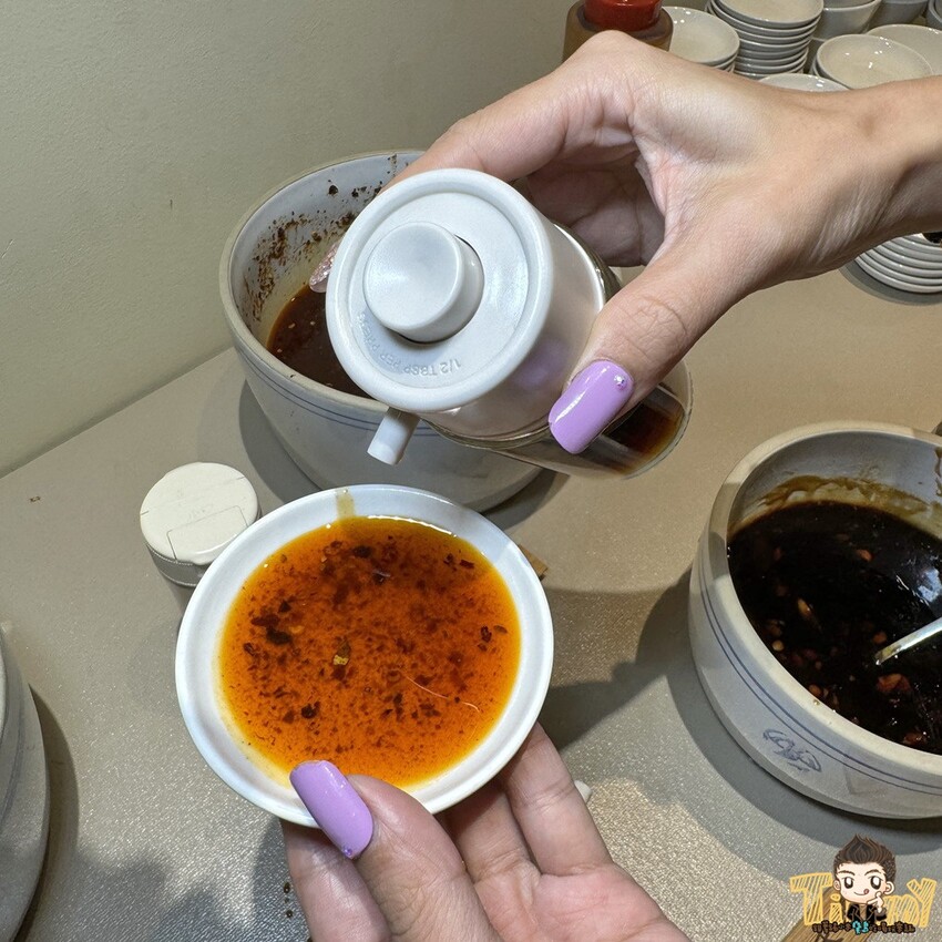 醬料區有辣油、蒜末醬、辣椒醬等調味料自行取用。