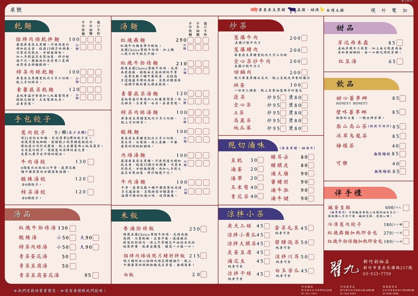 翟九新竹創始店就在巨城斜對面,百帝美髮旁。