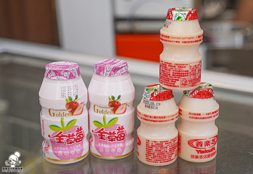 金草莓加上養樂多,會帶出草莓酸甜與優酪乳滋味