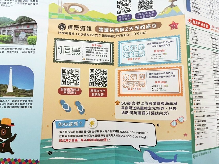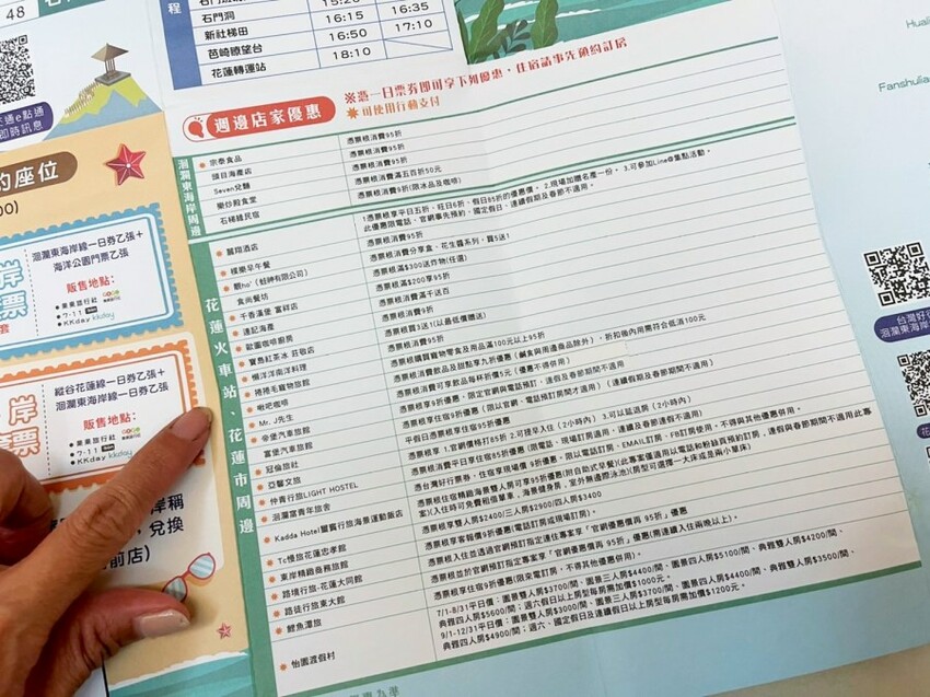 太魯閣線、洄瀾東海岸線的摺頁店家優惠都很多