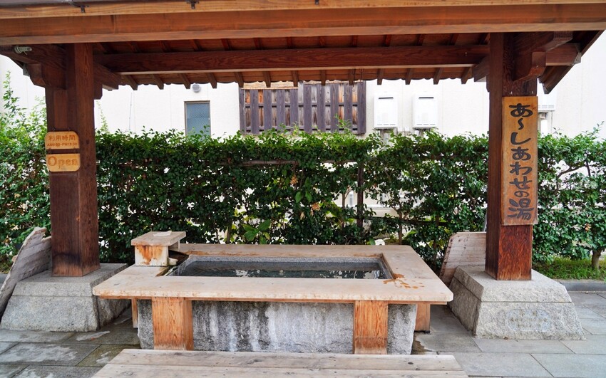 飯坂溫泉街上有4個足湯,鯖湖湯附近的這個足湯就叫「啊!幸福之湯」好有趣!!上面有屋頂,即使下雨也ok!!
