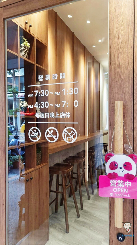 玻璃門上有寫明營業時間,禁菸,禁帶外食和寵物