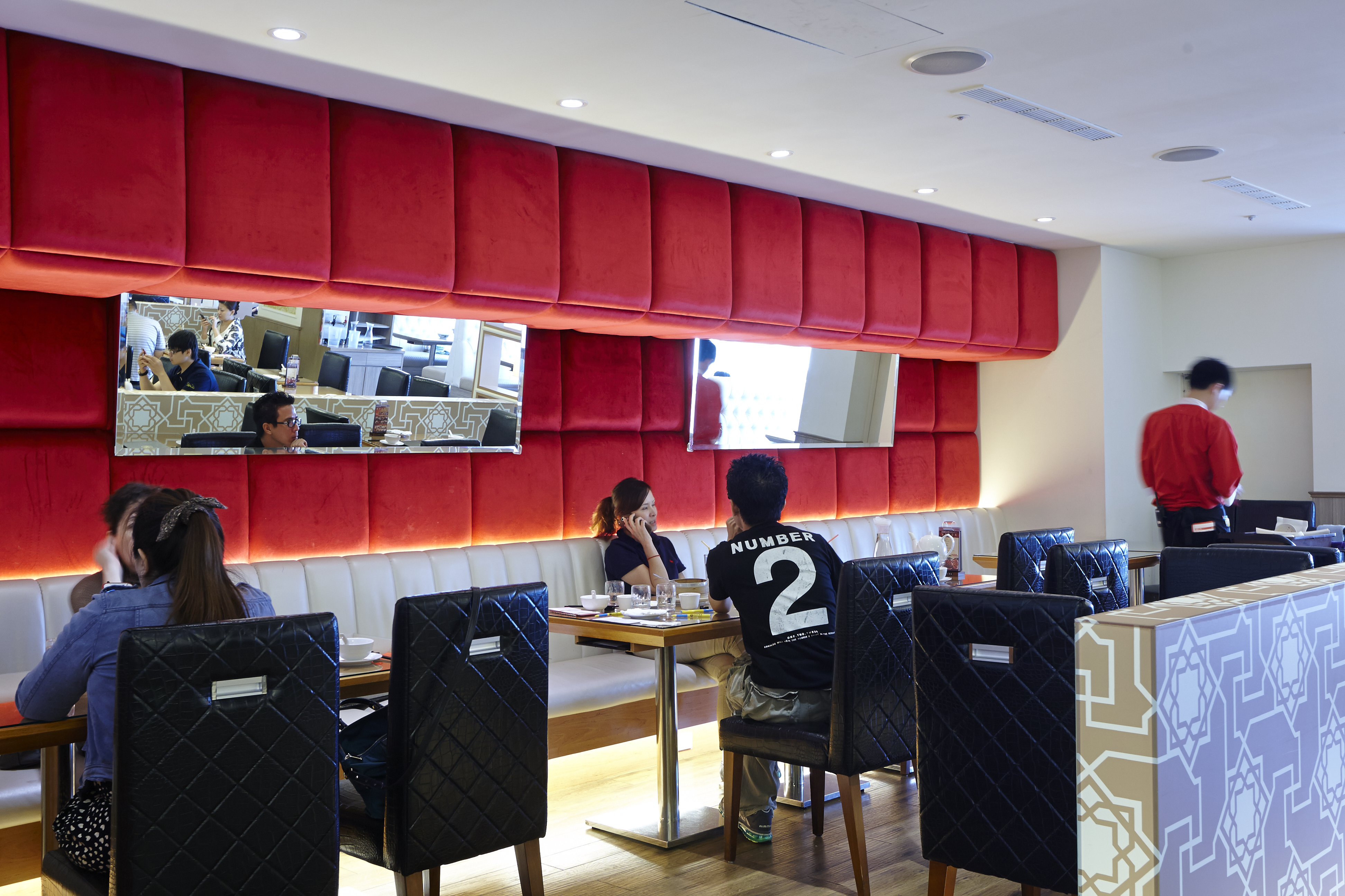 改變以往茶餐廳的用餐格局,擺脫擁擠喧鬧的食堂氛圍,特以華麗復古的打造未來的茶餐廳,店內的裝潢設計氣派輝煌,「新港茶餐廳」以明亮、時尚與高雅的風格。