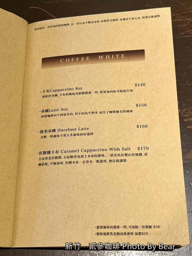 貳參咖啡_菜單