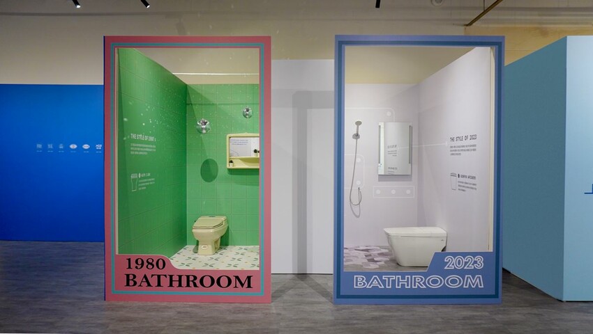 大家對HCG和成的印象當然是衛浴設備,而現場展示出1980年代跟至今的差異。一個即將百年的品牌,和成的操作模式不是找外來的團隊處理,完全都是和成自己的設計團隊。