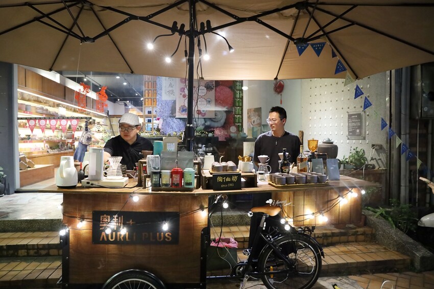 今年陶作坊再度邀請 Tea Party 策劃「竅門設計」王俊隆跨界操刀,以咖啡器具品牌「奧利+」串聯三峽打鐵人藝術工坊江承堯、小城外 Caffé CityNorth 咖啡師陳牧謙,打造「My Coffee Moment」行動咖啡車,為鶯歌提供了愜意休憩的藝文新節點,逛累了不妨來這裡享受特調飲品。