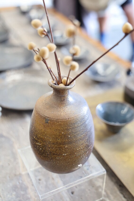 擅長陶藝的歐長坤老師製作的柴燒花器,古樸中帶有生命力。