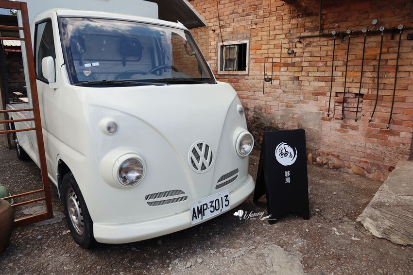 夥房入口處放置了一台復古福斯廂型車,很像是行動餐車,但這上面放的都是老師們的作品,陶作、書法及花藝,呈現的是一個靜謚的氛圍。