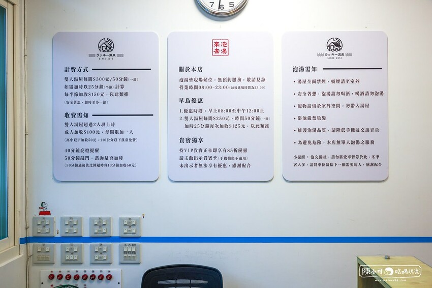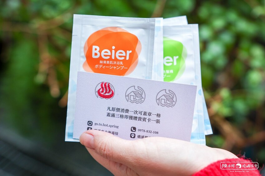 【來去泡湯坊】湯屋有提供沐浴乳和洗髮精,原價消費還會給集點卡,滿三格就送貴賓卡,之後來泡湯都有85折優惠價。
