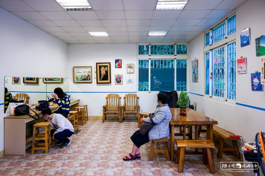 櫃檯旁邊候位區還有化妝台,以木椅和木桌當候位區,加上環境乾淨,真的很推薦呢!而且這天遇到好客氣的店員,介紹也很仔細。